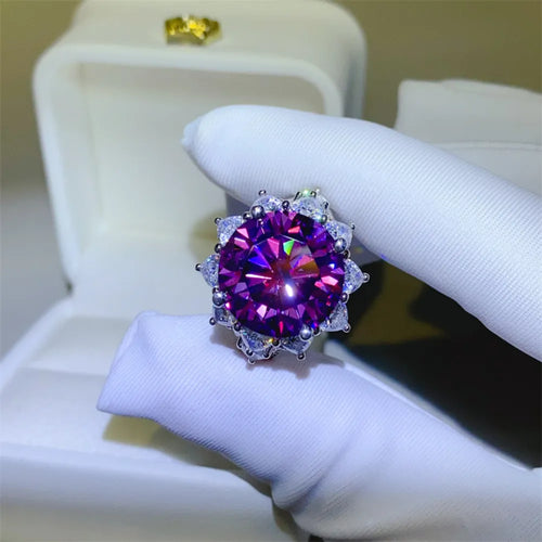 A crown reborn as a ring. The Imperial Bloom Ring radiates from its heart a 10-carat violet moissanite, sourced and cut in Belgium, the cradle of the world’s most flawless gemstones. Its hypnotic hue burns like a celestial flame, igniting an aura that eclipses diamond fire with otherworldly brilliance.