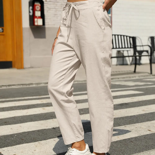 The Serene Lines Pants are crafted in a soft cotton-linen blend that breathes with you, while the elastic waist ensures comfort without losing sophistication. Their tapered cut creates a clean, elongating silhouette — casual enough for barefoot mornings, refined enough for nights in the city.