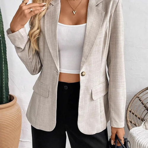 The Grey Élan Blazer is crafted with sharp lapels, a one-button closure, and a tailored silhouette that makes sophistication feel effortless. Long sleeves and discreet pockets complete its clean design, balancing modern elegance with everyday versatility.